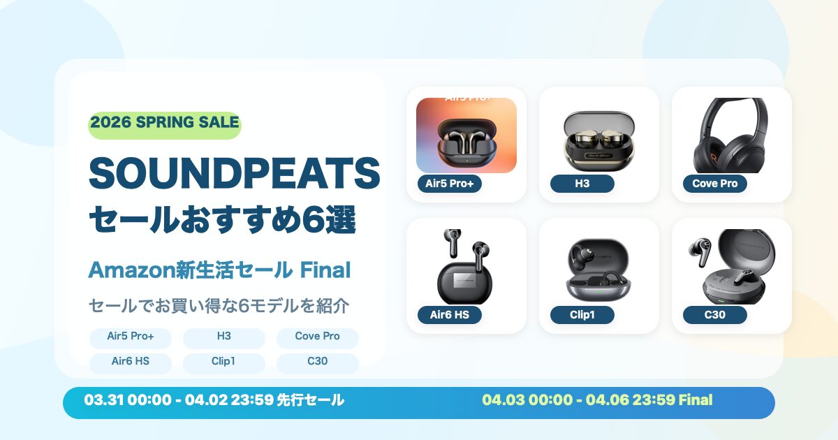 Amazon新生活セールFinal(〜2026年4月6日)は、SOUNDPEATS製品を最安値で手に入れる絶好のチャンスです。各モデルの特徴を改めて整理します。