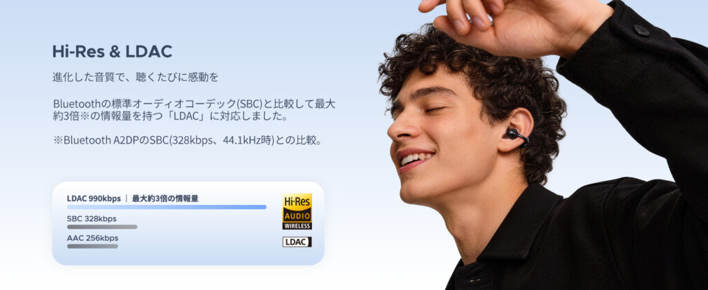 - iPhoneではLDAC非対応:SBCまたはAAC接続になります(音質面での恩恵が限定的)
